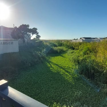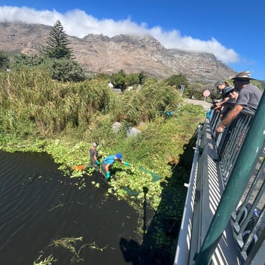 In terms of clearing the water lettuce, we devised an effective system, with three of us in the river with waders, and a few people above the bridge and on the river bank who used ropes, shade-cloth and plastic crates to pull the plants out and stack them up for removal.