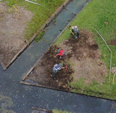 The aim is to create a larger wetland/pond area where the three streams meet, as well as to install indigenous plants around the pond. Local community members have already begun installing plants along the stream bank, and we plan to build on that.